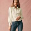 The Apricot V-Neck Lace Puff Sleeve Blouse