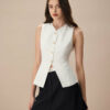 Women’s Khaki Crew Neck Ribbed Tencel Tanks