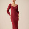 The Green Spliced Ruffle Poet Sleeve Midi Dress