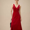 Black Velvet Elastic Waist Midi Skirt